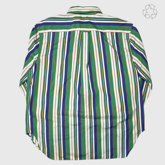 Women Polo Ralph Lauren Oversize Fit Striped Cotton Shirt 'Green/Blue Multi-Stripe' Size M Pre-Owned