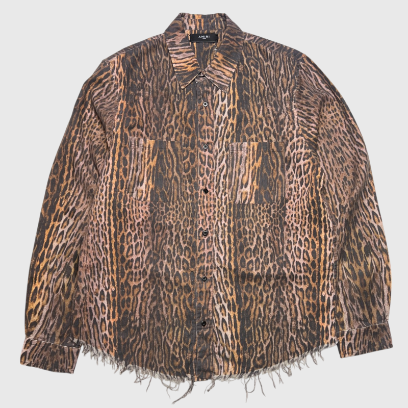 Amiri Distressed Leopard Printed Flannel Shirt Brand New