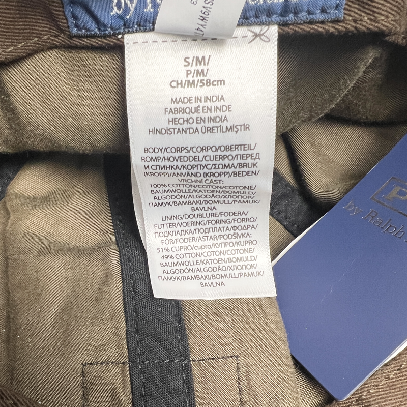 Features: 6-Panel Construction, fold-down earflaps with contrasting corduroy, cord ties, woven "Polo Ralph Lauren Guaranteed Quality Outdoor Supplies " label at the front, twill sweatband and lining.
