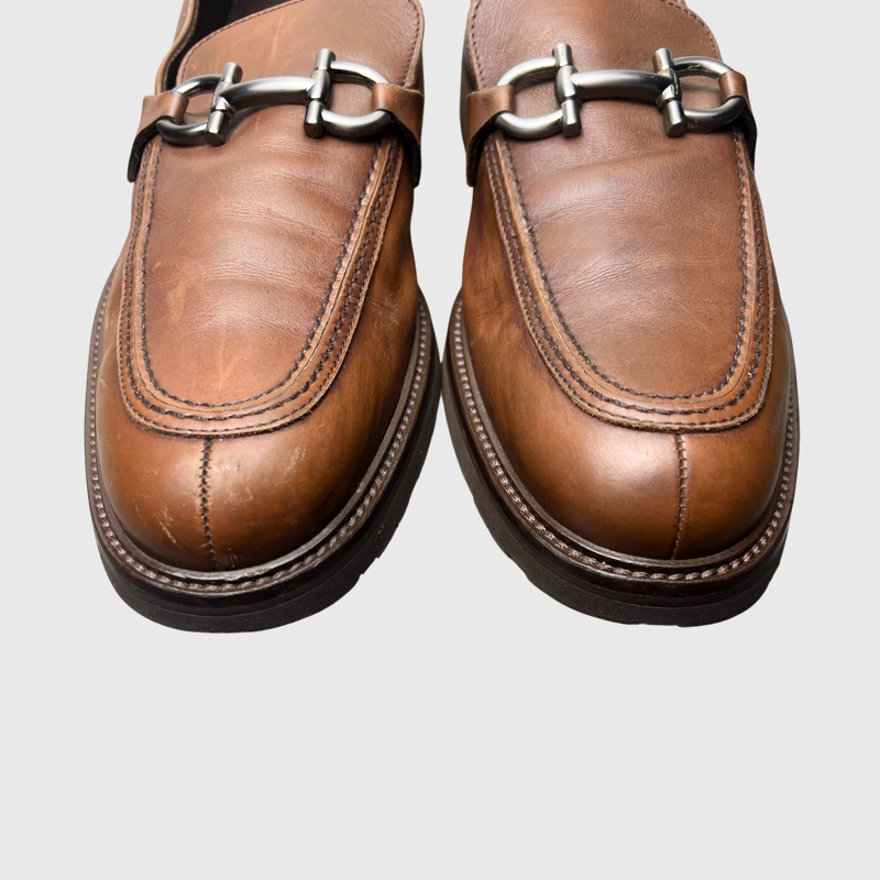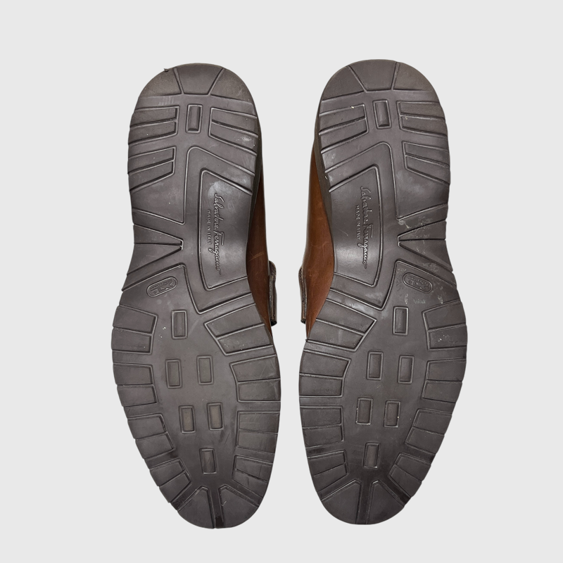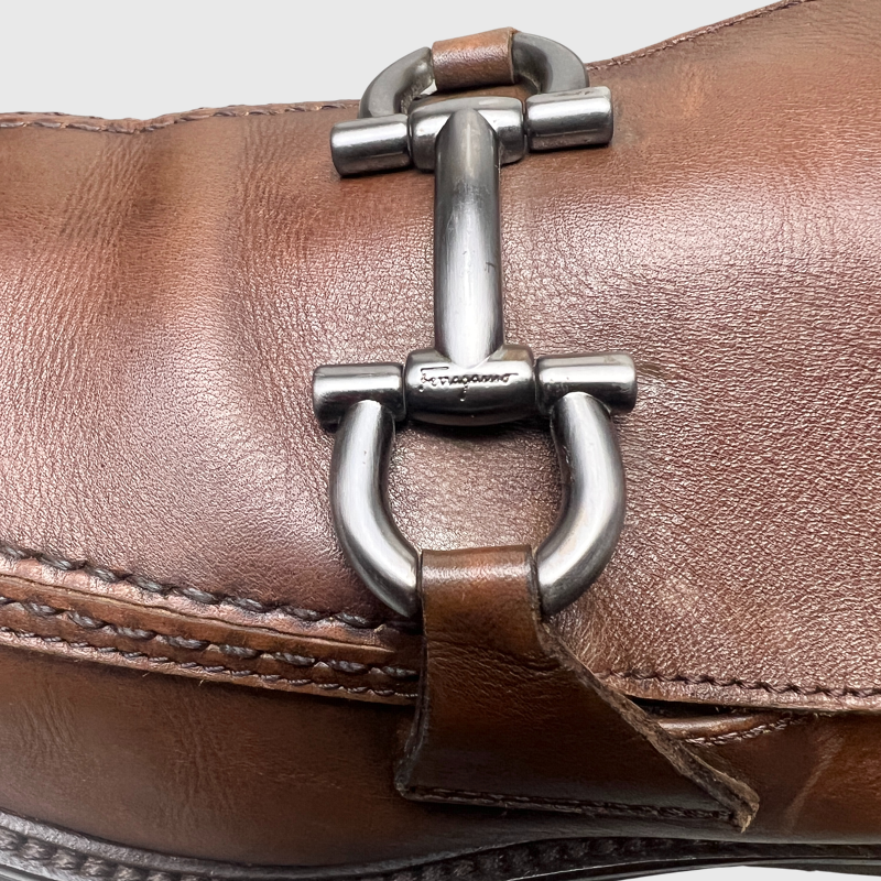Salvatore Ferragamo Gancini Plaque Loafers 'Brown' Size 9 Pre-Owned